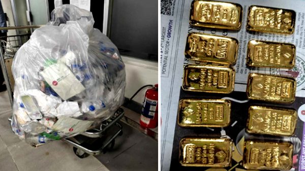 স্বদেশ ডেস্ক: বিমানের একটি ফ্লাইটের আবর্জনার ট্রলিতে পরিত্যক্ত অবস্থায় পাওয়া গেল ১.১৬ কেজি ওজনের ১০টি স্বর্ণের বার। যার বাজারমূল্য ১ কোটি টাকা। মঙ্গলবার (২৬ জুলাই) সকালে সিলেটের ওসমানী আন্তর্জাতিক বিমানবন্দর