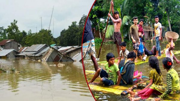 স্বদেশ ডেস্ক: সুনামগঞ্জ জেলায় বন্যায় মানুষের ঘর-বাড়ি, গবাদিপশু ও সহায় সম্পদের ক্ষয়-ক্ষতি অব্যাহত রয়েছে। থেমে-থেমে ভারী বৃষ্টিপাতের পাশাপাশি জেলার উপর দিয়ে প্রবাহিত হচ্ছে প্রবল পাহাড়ি ঢলের জলস্রোত। ভাটির এই জনপদের