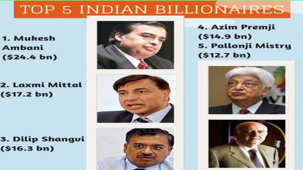 স্বদেশ ডেস্ক: সোমবার শেয়ার বাজারের পতনে মাথায় হাত পড়ল ভারতের পাঁচ ধনকুবের শিল্পপতির। মুকেশ আম্বানি, শিব নাদার, পালোনজি মিস্ত্রি, আজিম প্রেমজি ও উদয় কোটাকদের সংস্থার শেয়ারদর দ্রুত নেমে যায়। এর