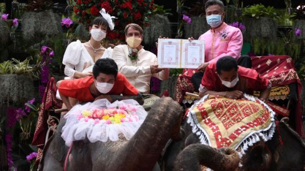 স্বদেশ ডেস্ক: ভ্যালেন্টাইন ডে বা ভালোবাসা দিবসে ব্যতিক্রমী এক বিয়ের উৎসব হয়েছে থাইল্যান্ডে। সেখানে হাতির পিঠে চড়ে বিয়ে করেছেন ৫৯ দম্পতি। ভ্যালেন্টাইন্স ডেতে বিশেষ এই আয়োজন ছিল পূর্ব থাইল্যান্ডের ছনবুরি