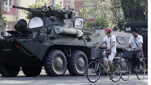 স্বদেশ ডেস্ক: মিয়ানমারের বিভিন্ন শহরের রাস্তায় সাঁজোয়া যানের টহল দিতে দেখা যাচ্ছে। গত ১ ফেব্রুয়ারি হওয়া অভ্যুত্থানের বিরুদ্ধে বিক্ষোভকারীদের দমনে এই পদক্ষেপ নিয়েছে দেশটির সামরিক বাহিনী। এছাড়া গতকাল রোববার স্থানীয়