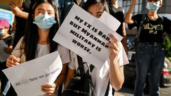 স্বদেশ ডেস্ক; মিয়ানমারের সেনা বাহিনীকে সাবেক প্রেমিকের চেয়েও খারাপ বলে মন্তব্য করছেন দেশটির জনগণ। গতকাল থেকে বিভিন্ন আন্তর্জাতিক গণমাধ্যমে মিয়ানমারের কিছু সংবাদ প্রকাশ হয়েছে, যেখানে দেখা গেছে প্লাকার্ড হাতে বিক্ষোভ