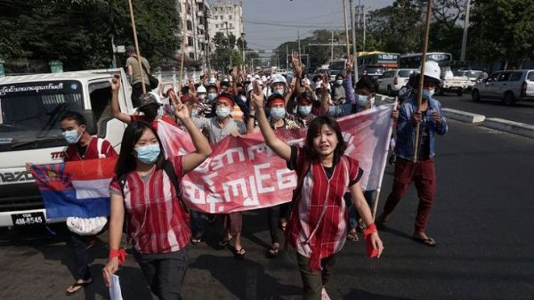 স্বদেশ ডেস্ক: অং সান সু চিসহ রাজবন্দিদের মুক্তি ও গণতন্ত্র ফিরে পাওয়ার দাবিতে হাজার হাজার বিক্ষোভকারী মিয়ানমারের রাজপথে নেমে এসেছেন। সেনা অভ্যুত্থানের প্রতিবাদে তারা টানা দ্বিতীয় দিনের মতো বিক্ষোভ করেছেন।