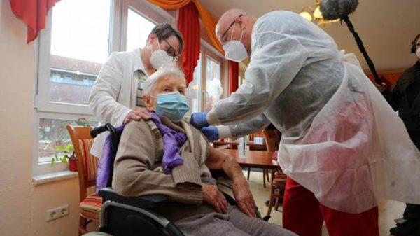 স্বদেশ ডেস্ক: জার্মানিতে প্রথম করোনাভাইরাসের টিকা গ্রহণকারীদের মধ্যে রয়েছেন ১০১ বছর বয়সী নারী এদিথ কোইজালা। জার্মানির সাক্সোনি-আনহাল্ট অঙ্গরাজ্যের একটি প্রবীণ নিবাসে বসবাসকারী ওই বৃদ্ধাকে গতকাল শনিবার এই টিকা দেওয়া হয়।